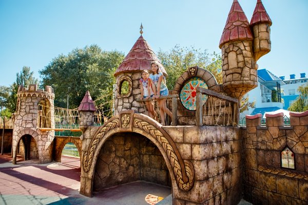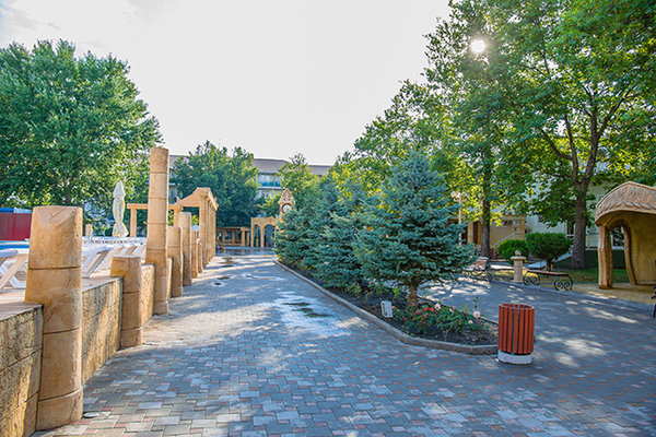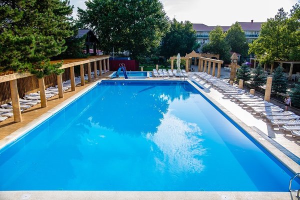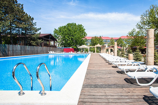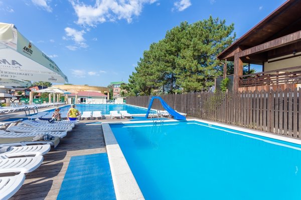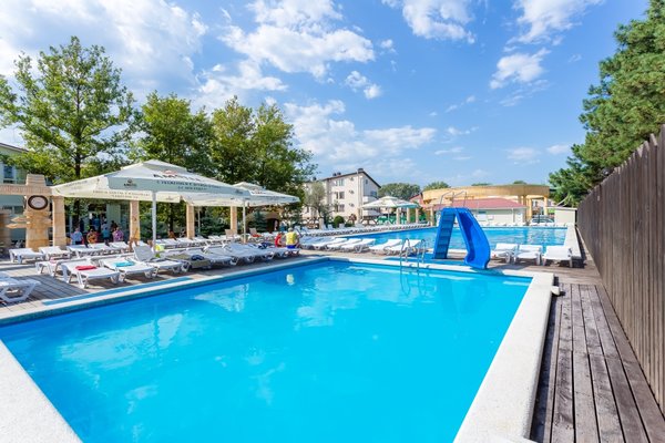 комплекс бассейнов — из 2 детских бассейнов рядом с бассейнами для взрослых, работают сезонно с 29.04 по 30.09, часы работы: 10:00 до 20:00, размеры 8×6×0,7 и 6×3×0,7 м, есть водные горки, аквааэробика, веселые старты