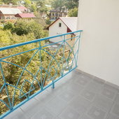 На пятом этаже находится кафе-терраса. С открытой веранды-балкона открываются удивительные пейзажи, великолепные горы, скалы, горная речка, прекрасная панорама моря – все это благотворно действует на человека. Прекрасное место для вечернего отдыха на свежем морском воздухе, где можно приятно провести время за чашечкой чая или кофе, а при желании за бокалом холодного пива или рюмочкой коньяка.