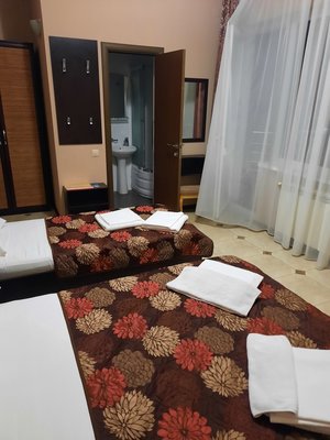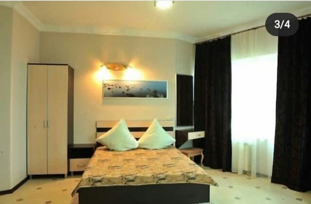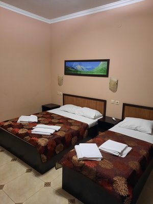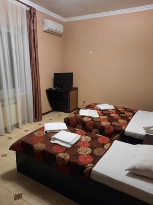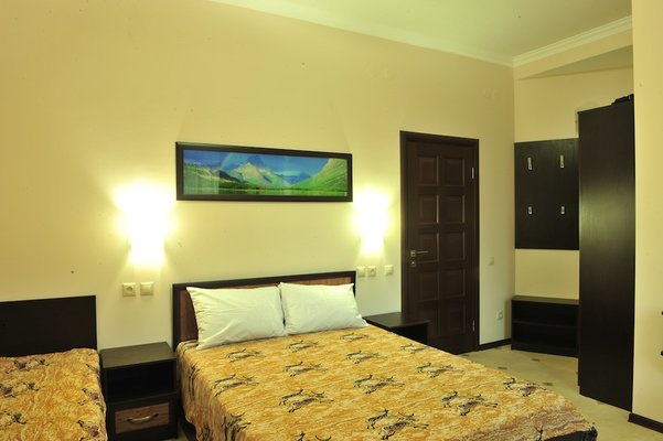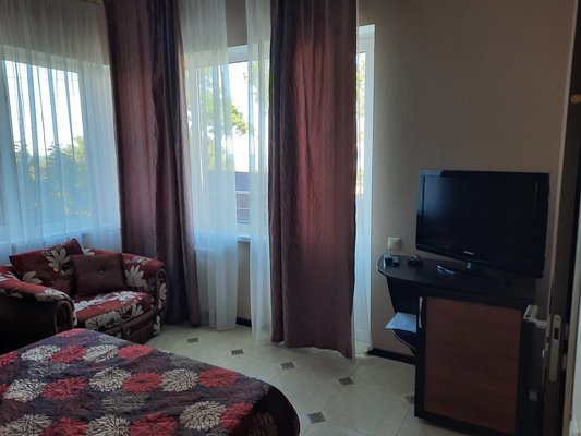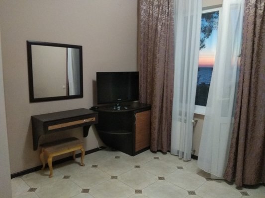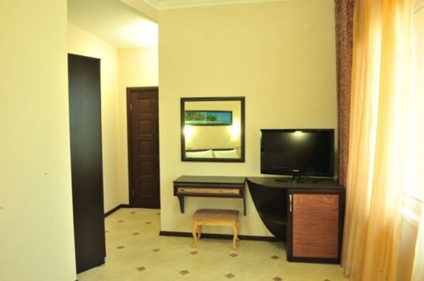 Отель располагает четырехэтажным корпусом, разместившимся на ухоженной зеленой территории. В числе предложений для гостей имеются двух- и трехместные номера категорий «Эконом» и «Стандарт», а также студии с кухней, люксы и апартаменты. В каждом номере современный светлый интерьер, установлена сплит-система, имеется отдельная ванная комната, холодильник и телевизор.