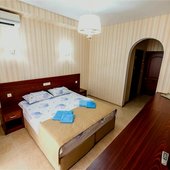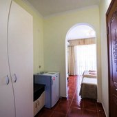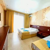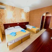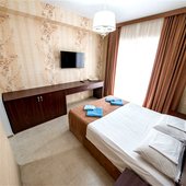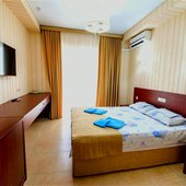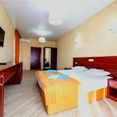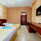 - «Полулюкс». Эта категория самая распространенная. Есть 2-х местные, 3-х местные, 4-х местные номера. Номера 18-22 квадратных метра. Отдельный санузел. Везде двухспальная кровать, при желании можно заменить на односпальные. Все номера с балконами, на балконе есть стол со стульями и прекрасный вид;