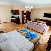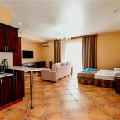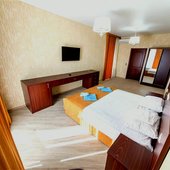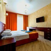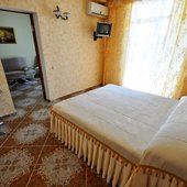 - «Люкс». 2 комната, площадь составляет 40 квадратных метром, здесь могут разместиться от 1 до 5 человек. Балкон и отдельный санузел;