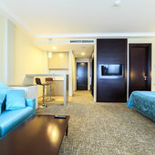 При размещении в двухместных номерах одного взрослого и одного ребенка на дополнительном месте стоимость пребывания взрослого определяется из расчета одноместного размещения.