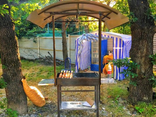 Отдельная столовая для питания гостей автокемпинга на территории не предусмотрена. Отдыхающие могут готовить себе еду на мангалах. При необходимости есть возможность взять мангал в аренду у администрации. Для хранения еды есть холодильники.