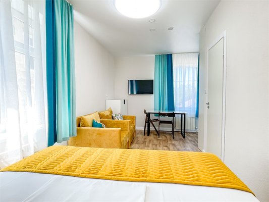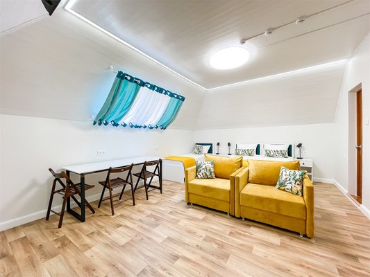 Для аренды предлагается несколько стандартных номеров и уютный коттедж, где вы сможете насладиться комфортной атмосферой и отличным отдыхом. На всей территории отеля предоставляется бесплатный Wi-Fi, чтобы вы могли всегда оставаться на связи, а также автопарковка, услуги стирки и уборки.
