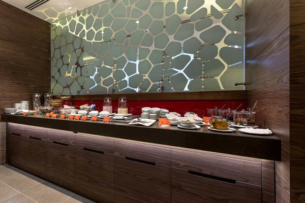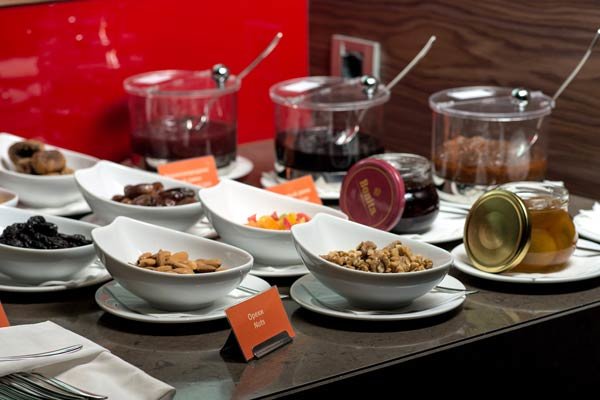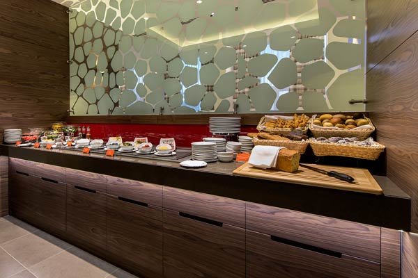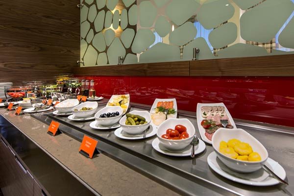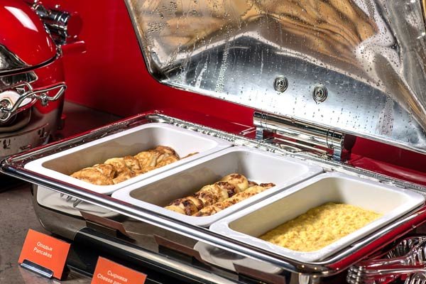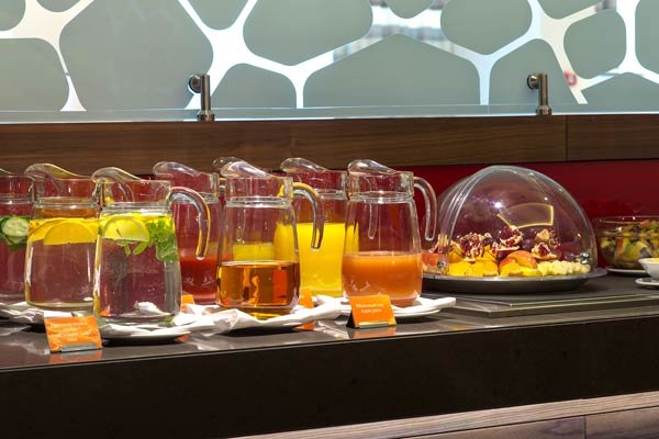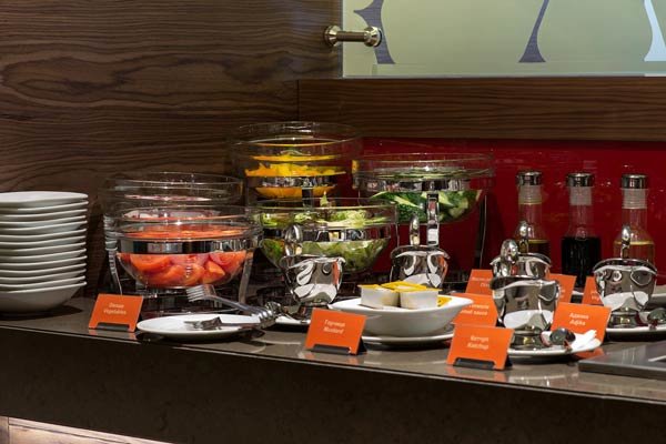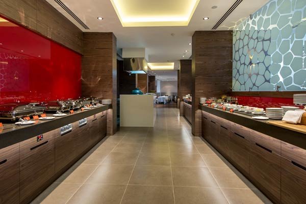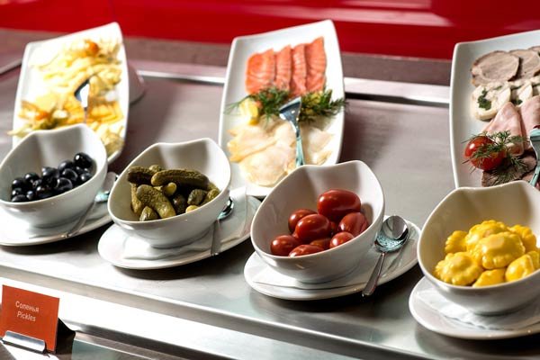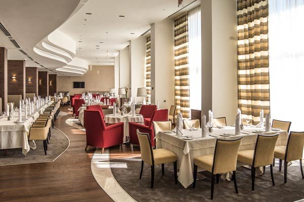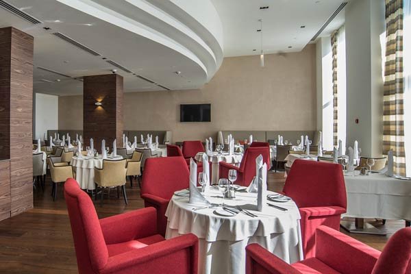Здесь ежедневно для гостей проходят завтраки в формате «шведский стол», на выбор предлагаются вкуснейшие десерты, каши, салаты, свежие фрукты и овощи. В течение дня можно выбрать блюда по меню а la carte или заказать еду в номер.