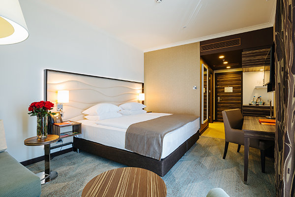 Отель представляет собой стильное семиэтажное здание, выполненное в современном архитектурном стиле, с элегантными балконами и лоджиями. Интерьеры холлов, коридоров и номеров поражают простором и обилием естественного света благодаря большим панорамным окнам. Из них открываются захватывающие виды на бескрайнее море, живописное побережье, величественные горы и зеленые парки. Каждый номер оснащен всем необходимым для комфортного пребывания: индивидуальный санузел с душем или ванной, сплит-система, бесплатный Wi-Fi, телевизор и мини-бар. Мы заботимся о каждом госте, поэтому некоторые номера специально оборудованы для людей с ограниченными возможностями передвижения.
