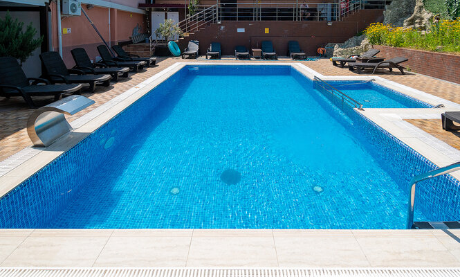 Освежитесь в прохладном бассейне во дворе отеля в жаркие дни. Расслабьтесь на удобных шезлонгах и насладитесь солнечными ваннами. В летнее время в уютной столовой вы сможете насладиться вкуснейшими блюдами.