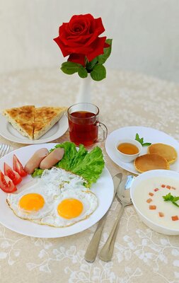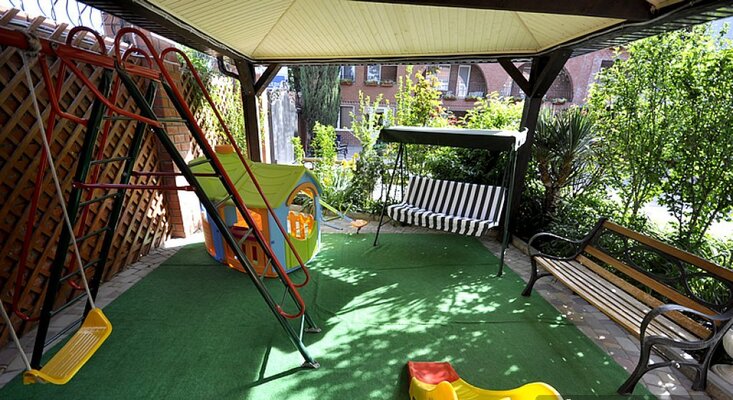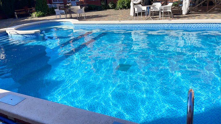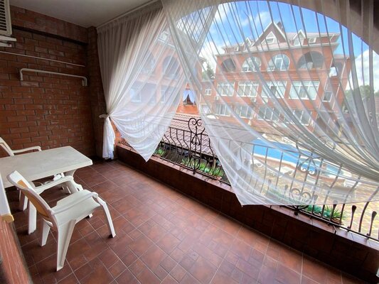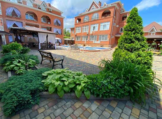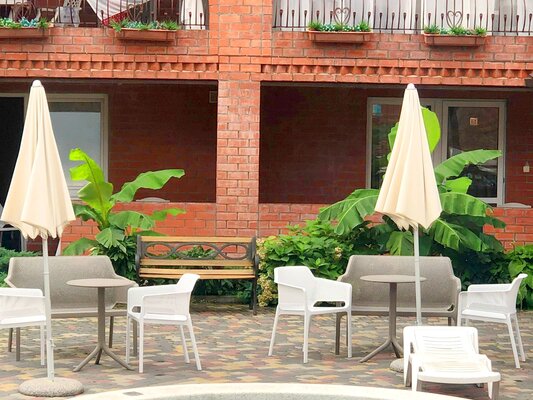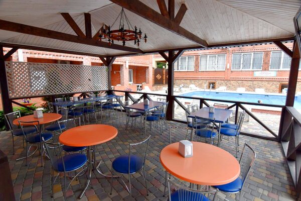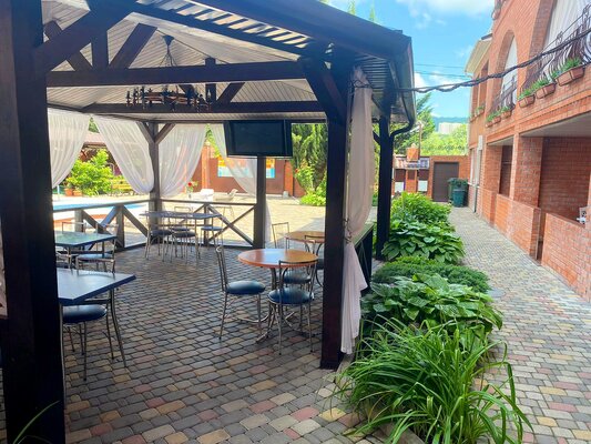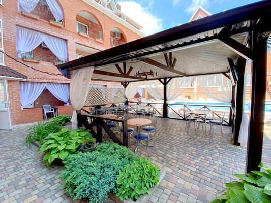 Проведите время в уютном мангальном баре, где вы сможете насладиться ароматными шашлыками и вкусными блюдами из разнообразного меню. Умиротворяющая атмосфера пруда с живописным водопадом и плавающей рыбой создаст расслабляющую обстановку. Два бассейна с аттракционами (для взрослых и детей) в центре ухоженного двора подарят вам освежающий отдых. Шезлонги у бассейна обеспечат комфорт во время принятия солнечных ванн. Охраняемая парковка для гостей, прибывших на автомобиле. Закрытая детская игровая зона с безопасными аттракционами — идеальное место для развлечений самых маленьких гостей.