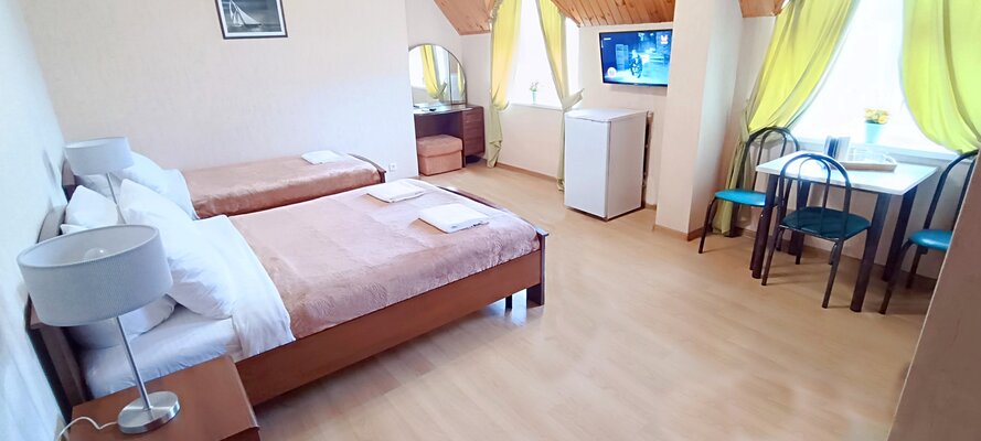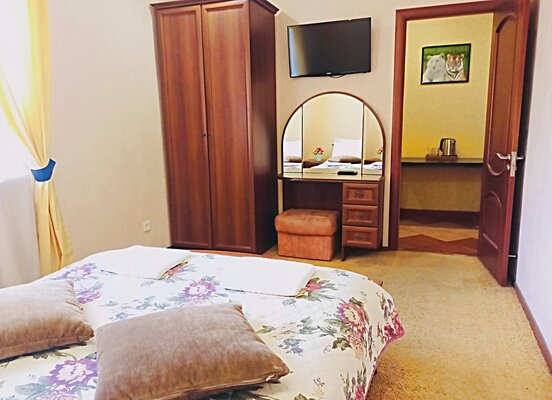 Два просторных 4-этажных корпуса предлагают комфортабельные номера, оснащенные всем необходимым для приятного пребывания: телевизор, гардероб, удобные кровати, кондиционер и собственная ванная комната, бесплатный Wi-Fi доступен на всей территории.