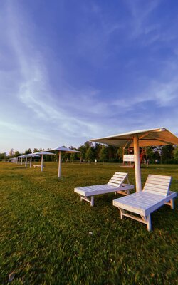- 2 шезлонга с матрасами из сена для отдыха.