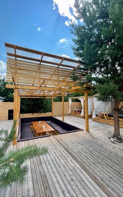 Банный комплекс «Бархат Паррр» предлагает неповторимый опыт расслабления и восстановления в атмосфере природной гармонии. Комплекс состоит из трех юрт: первая из них оснащена парной и ледяной купелью, вторая предназначена для отдыха с уютным очагом, а третья — для ресепшена и раздевалок, обеспечивая комфортный и приватный отдых. На открытой территории располагается подогреваемый бассейн, кровать-качеля и шезлонги, создавая идеальные условия для отдыха на свежем воздухе.