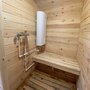 1. В просторной парной размером 2,8 на 3,5 установлена электропечь с эффектом русской бани. Есть два ряда широких полков, установленных вдоль стен в форме буквы Г, длинная сторона - расположена под широким окном. Для создания пара вода льется в специальную чашу.