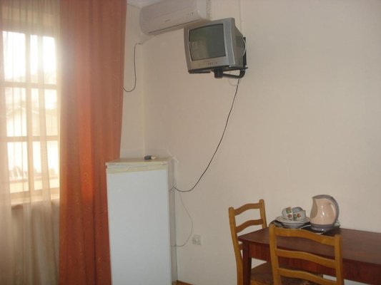 Светлые номера и коттеджи оснащены кондиционером и оформлены в классическом стиле и теплых тонах. Также в вашем распоряжении телевизор, холодильник и собственная ванная комната с бесплатными туалетно-косметическими принадлежностями.