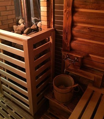 Если достанется комната рядом с трубой, идущей от сауны, летом будет слишком жарко. Без кондиционера спать тяжело в духоте.