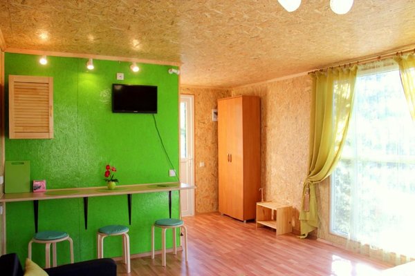 К вашим услугам уютные домики А-фрейм, комфортабельные номера в двухэтажной гостинице, собственная столовая, детская площадка и качели среди сосен. Близость к пляжу обеспечит вам незабываемый отдых на природе круглый год.