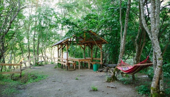 В домиках практически нет посуды. Мы не знали об этом. Хотя в других местах домики оборудованы посудой полностью. Мы не взяли одноразовую. Пришлось просить у администратора. Дали, но сказали, что обычно этого не делают.