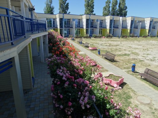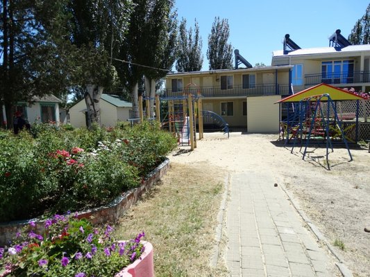 Для гостей, приехавших на личном транспорте, имеется бесплатная парковка. На территории оборудована зона барбекю для самостоятельного приготовления мяса или рыбы на костре. В 50 метрах от турбазы простилается обустроенный песчаный пляж Таганрогского залива. Тут туристы купаются в чистой воде, загорают на теплом песке и катаются на водных горках.Для детей во дворе комплекса есть игровая площадка с качелями, горкой, турниками и беседкой, в которой можно спрятаться от солнца.