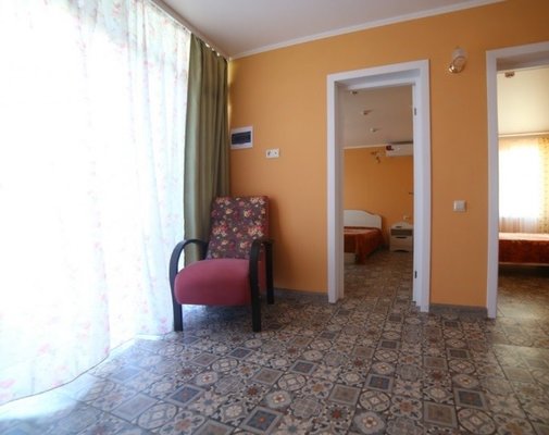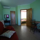 Для размещения гостям предлагаются номера класса «Эконом», «Стандарт», «Комфорт» и «Студия», а также домики и двухэтажный коттедж на берегу моря. Для бюджетных туристов предусмотрены номера с частичными удобствами.