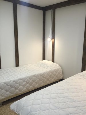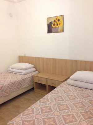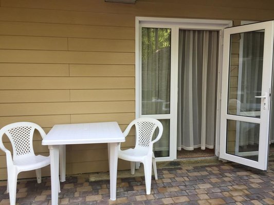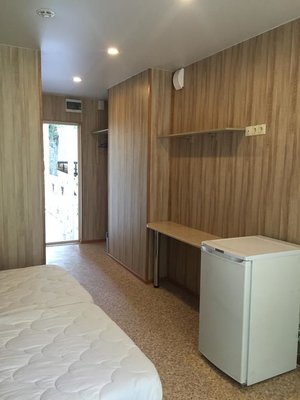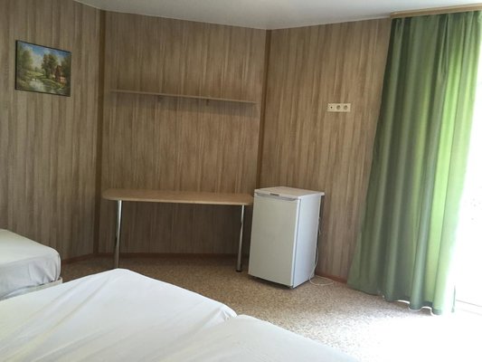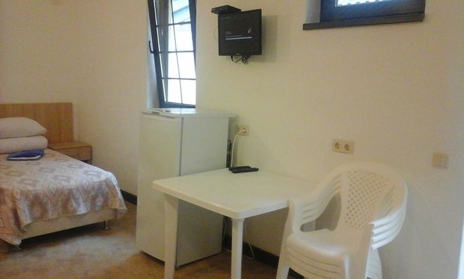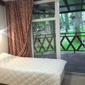 Поселилась наша семья в 4 местном коттедже люкс. Домик хорошо оборудован. Есть холодильник, телевизор, правда он плохо ловит каналы, часто теряет сигнал, отличные кровати, порадовал вместительный шкаф, кондиционер. Санузел совмещён, в душе вода просто стекает...