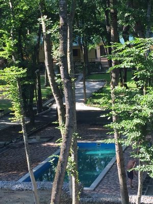 Расположение в лесу, большая территория, хорошие номера, бассейн, прохлада, даже в жару.