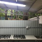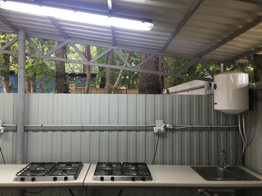 Нет освещения на террасе, нет посуды, если не готовить на месте, сходить покушать поблизости вообще некуда