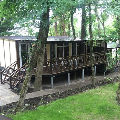 Отдыхали с 05.06.19 по 10.06.19 Выбор пал на эту базу из-за территории. Отдельно стоящие домики со всеми удобствами находятся в тени дубогово бора. Т. е. База находится ВСЕГДА в тени даже в самое пекло. Бронировала...
