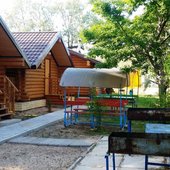 А также рядом с турбазой есть кафе «Бочка» и собственный выход к общественному пляжу.