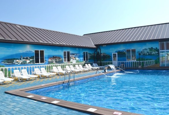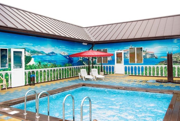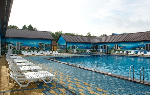 Бассейны оснащены современным европейским оборудованием для очистки воды. Большая мангальная вымощена плиткой, можно приготовить мясо или рыбу на углях.