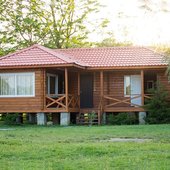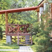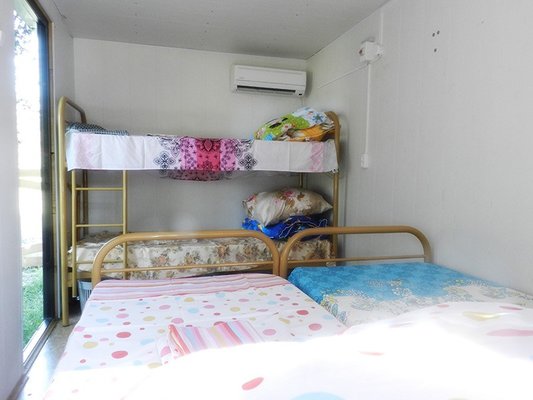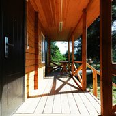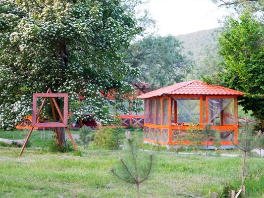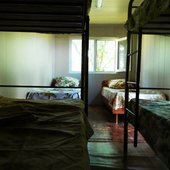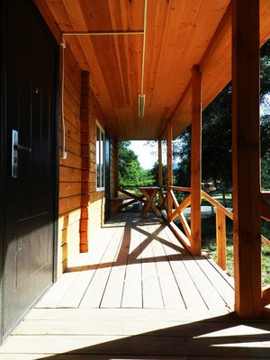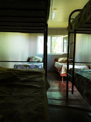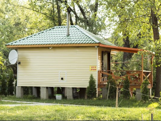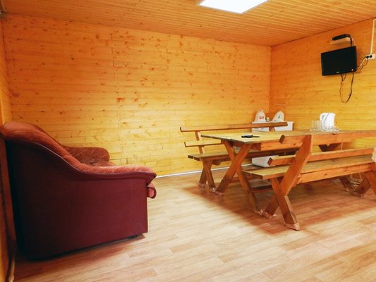 В домике неплохо бы поставить стол чуть побольше, с внутренней полочкой, а то все вещи находятся в сумках.