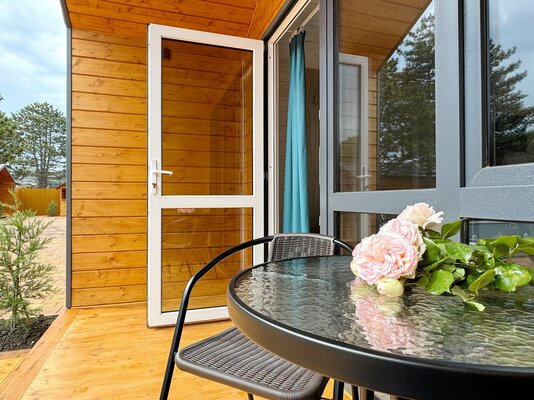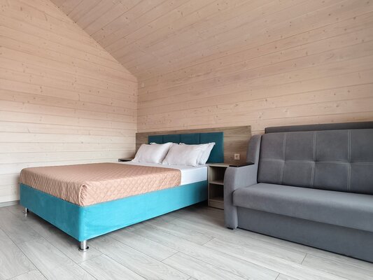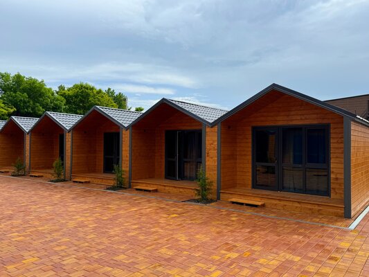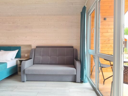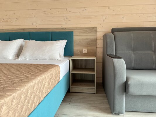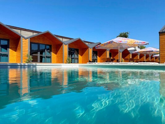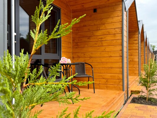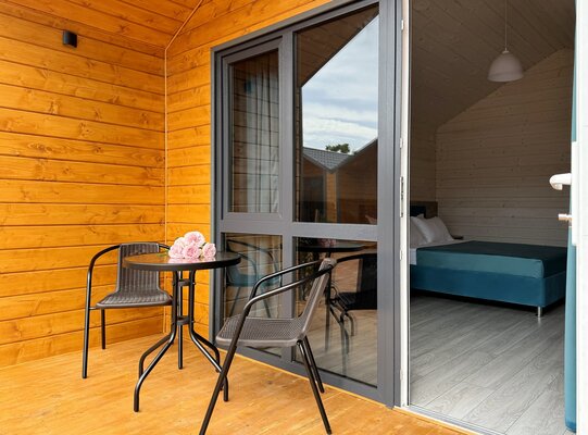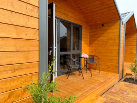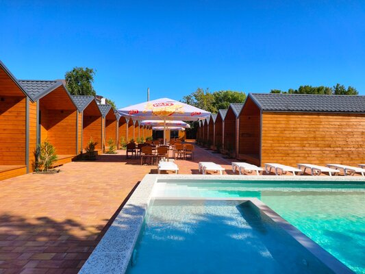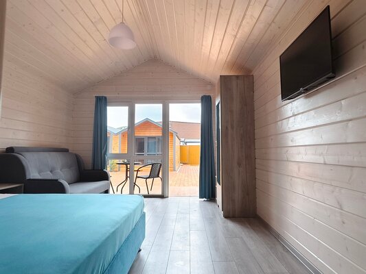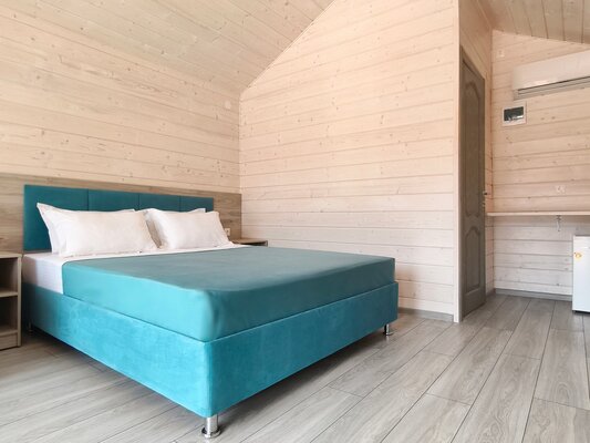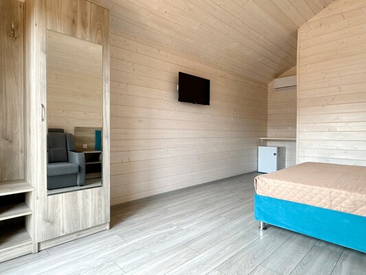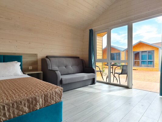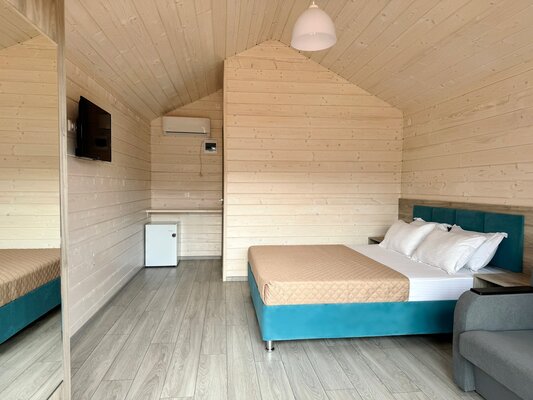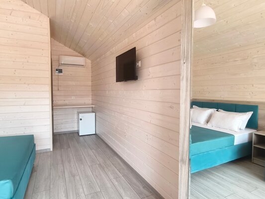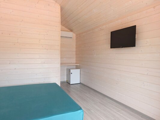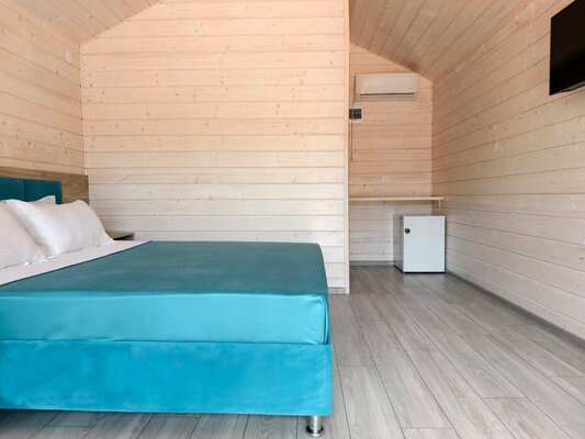 К услугам гостей — комфортабельные и уютные домики, оснащенные всем необходимым для беззаботного проживания. В каждом домике есть удобная кровать, прикроватные тумбочки, шкаф, зеркало, вешалка, мини-холодильник, телевизор и кондиционер. Современные ванные комнаты оборудованы новой сантехникой.