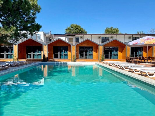 Для максимального комфорта предусмотрены дополнительные услуги: открытый бассейн, бар и трансфер. Особое преимущество «Рио» — первая береговая линия: всего 200 метров отделяют вас от чистого пляжа Черного моря, позволяя наслаждаться солнцем и морем в любое время.