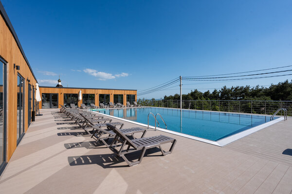 Насладитесь отдыхом у бассейна с кристально чистой водой. Специально для комфорта гостей создана уютная зона отдыха с шезлонгами, зонтами и душевыми кабинами. Это идеальное место, чтобы освежиться в жаркий летний день, восстановить силы после активного дня или весело провести время с близкими.