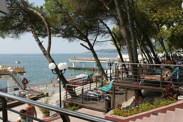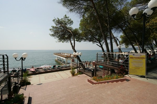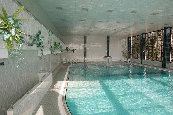 На территории санатория расположены два бассейна — открытый и крытый.