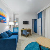 В пяти минутах ходьбы от отеля лучший в России аквакомплекс Bora-Bora Beach Club с пятью бассейнами, искусственной серф-волной и детской зоной Bora-Bora Kids, а также Анапский дельфинарий на проспекте с океанариумом и пингвинарием.