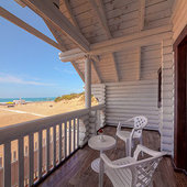 Гостиница выполнена в русском стиле и представляет собой 22 отдельно стоящих двухэтажных домика расположенных вокруг двух бассейнов с чистейшей морской водой, площадкой для загара и бар бассейном. Номера сочетают в себе комфорт современности и очарование естественного природного окружения.