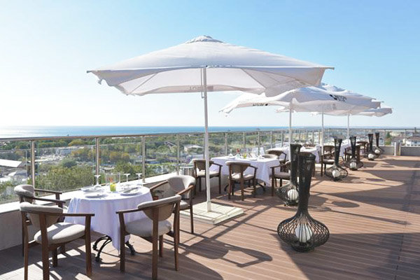 Основной ресторан — ресторан «a la carte» (8 этаж); «шведский стол»; время работы: с 07-00 до 20-00, ресторан грузинской кухни "Сам Пришел", за дополнительную плату.