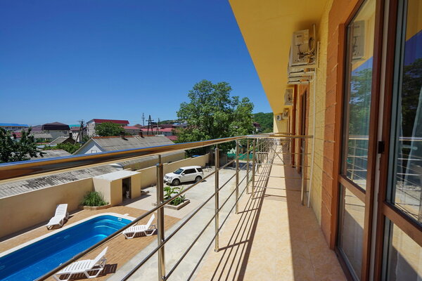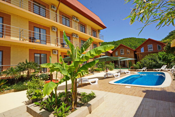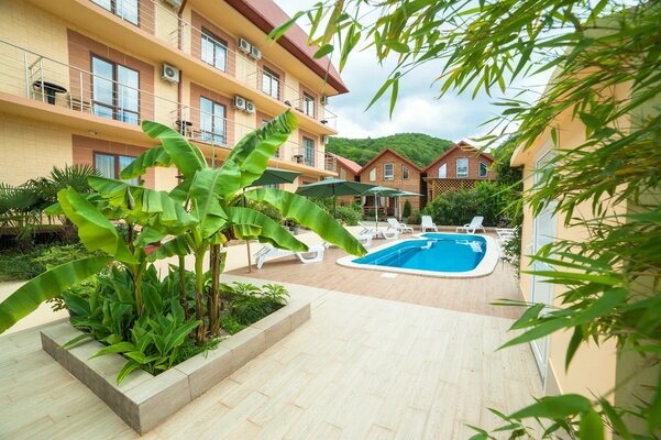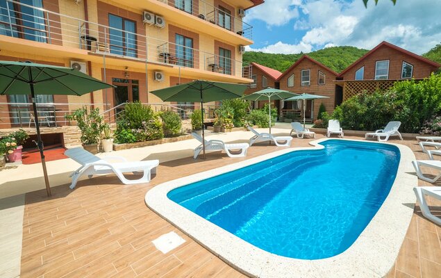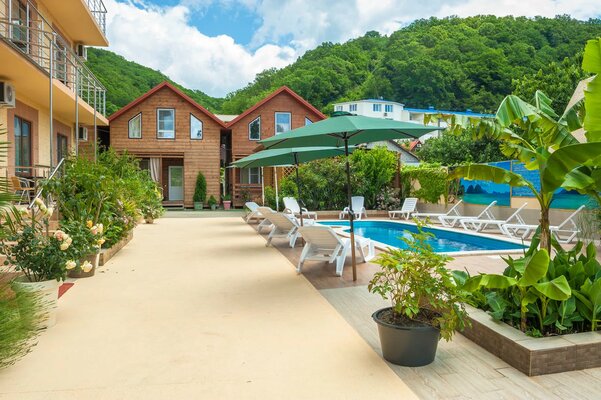 Поездом до ж/д вокзала г. Туапсе, далее 550 м до остановки «Автовокзал г. Туапсе», далее на автобусе №707 до остановки «Автостанция Новомихайловская», далее 1,9 км до отеля.