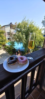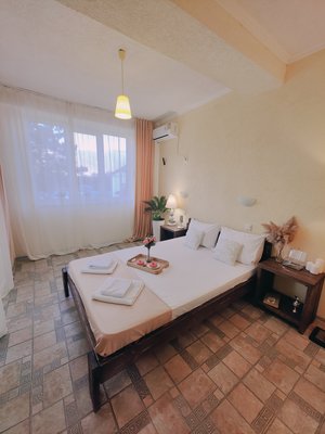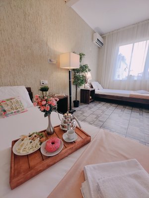 Парк-отель расположен прямо у моря, всего в минуте ходьбы от проката, где можно арендовать лежаки и зонты для пляжа.