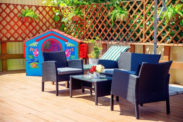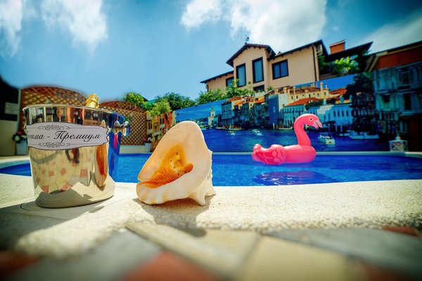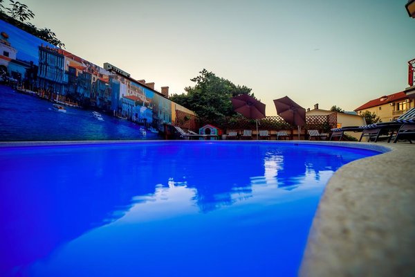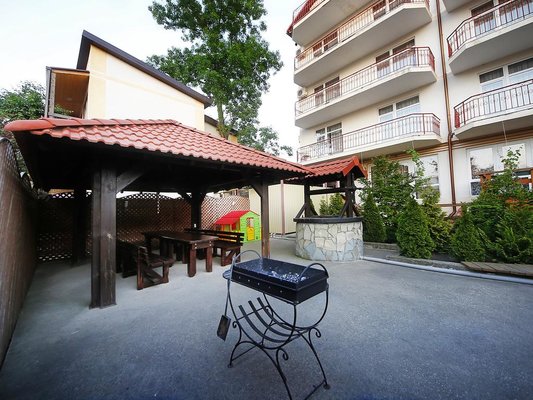 На территории отеля есть бассейн с подогревом и оригинальной подсветкой. Вокруг бассейна располагаются шезлонги для любителей солнечных ванн, а отдохнуть в тени можно, не отходя от зоны бассейна, под зонтами. Имеется Зона барбекю с беседкой, большим столом и мангалом. Садовые качели, понравятся любителям просто подышать свежим воздухом. Лаунж-зона для вечернего отдыха. Вся территория радует разнообразием цветов на фоне строгой зелени хвойных растений. Здесь каждый найдёт себе уютный уголок для релаксации.