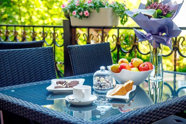 Вкусные домашние завтраки готовят квалифицированные повара. В высокий сезон питание – шведский стол, а в низкий – английские завтраки. Настоящий свежемолотый кофе, можно приготовить по своему вкусу на современной кофемашине.