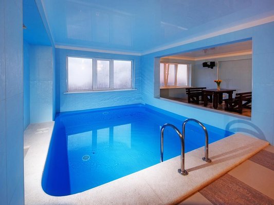 открытый — 10 х 5 м глубина 1,5 м. Режим работы: с 8:00 до 23:00.