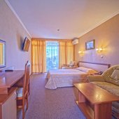 Номерной фонд отеля – стильные и уютные комнаты, оборудованные современной мебелью и техникой. Прямо на сайте вы можете забронировать номера категорий «Стандарт», «Стандарт Плюс» и «Апартаменты Де Люкс»! Ждем вас в гости на красивейшем черноморском побережье!