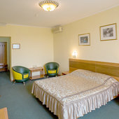 Открыт отель круглогодично и в теплый сезон пользуется популярностью из-за моря, на котором можно отдохнуть с мая по сентябрь. На пляж подается трансфер. Рядом с отелем останавливаются также городские маршрутки, к морю ехать несколько минут.