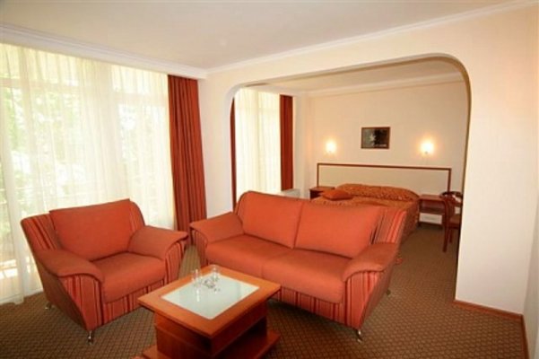 Дети принимаются бесплатно (без предоставления места, с питанием) до 4 лет. Дети принимаются с 0 лет. Лечение может предоставляться с 5 лет. Детям предоставляются скидки при размещении на дополнительном месте до 12 лет (при бронировании пакета «все включено»)