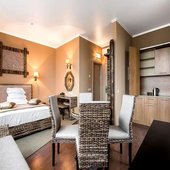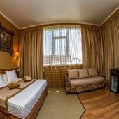 Светлые номера оформлены в современном стиле, в теплых тонах и оснащены кондиционером. В числе удобств всех номеров кондиционер, телевизор с плоским экраном, мини-бар, балкон и собственная ванная комната с феном и халатами.