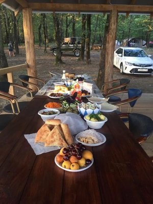 На территории кемпинга есть все необходимые удобства и развлечения, которые включены в стоимость проживания: Wi-Fi, душевые, туалеты, общая кухня с питьевой водой, электрочайники, беседки, столы с лавками, мангалы, качели и гамаки. Вы можете бесплатно установить дополнительную палатку или шатёр. Также за дополнительную плату можно воспользоваться индивидуальной розеткой или арендовать палатку.