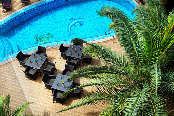 Ресположение, вид из окна, приемлемая цена, чистый бассейн, просторные номера, доброжелательный персонал.
