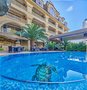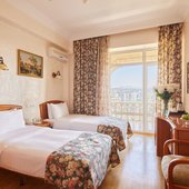 Взяли большой номер с двуспальной и односпальной кроватью. Вид был что надо, утром загляденье. Пение птичек, город и даже море. Завтракать можно начиная с 7 утра. В номере убрано, все есть. В отеле есть бассейн и спортзал.
