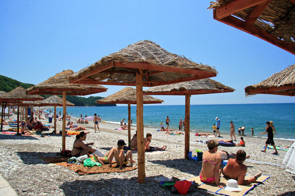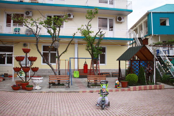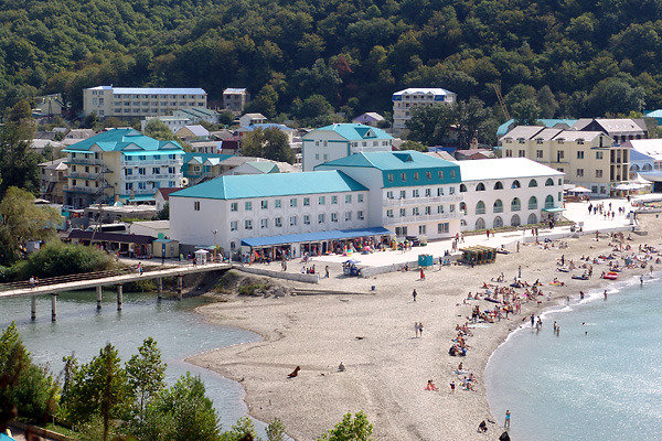 В 70 метрах от гостиницы находится оборудованный мелко-галечный пляж Черного моря с набережной. Зона отдыха возле моря оборудована кабинками для переодевания, туалетом, лежаками и зонтами от солнца. Для безопасности отдыхающих работает спасательный и медицинский посты.