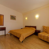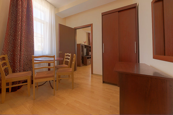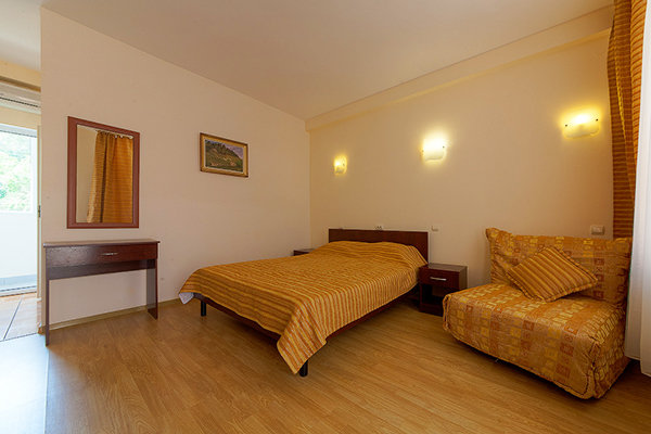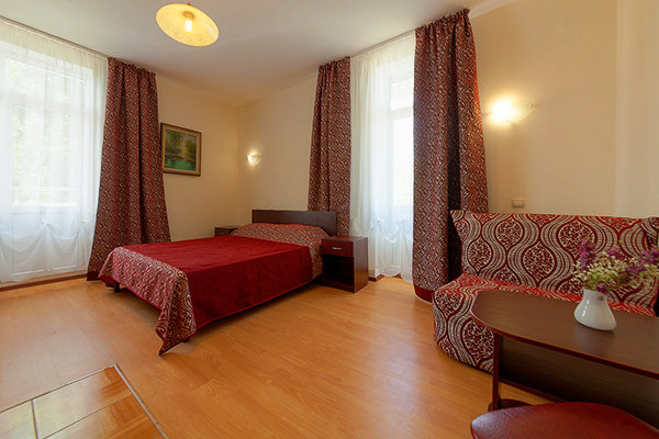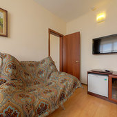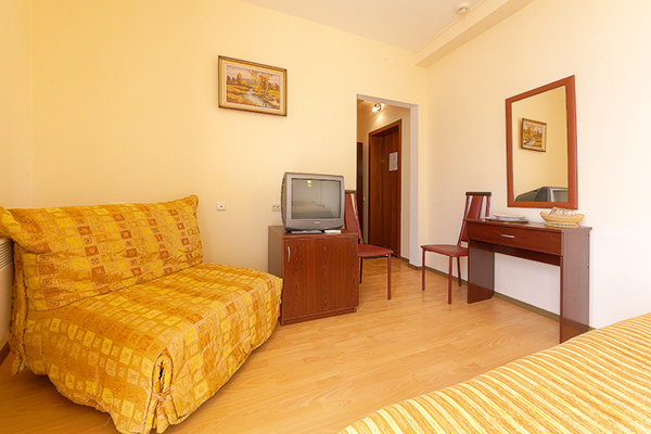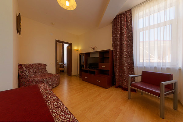 Номерной фонд гостиницы составляют комфортабельные номера, предназначенные для проживания как двух- трех человек, так и больших семей. Имеются номера с видом на море. Большинство номеров с балконами или террасами. Во всех номерах сплит-системы, телевизоры ж/к, холодильники, сейфы, санузлы с душем. Гости могут выбрать проживание в номерах различной комфортности: стандарт, одно- или двух- трех- комнатные.